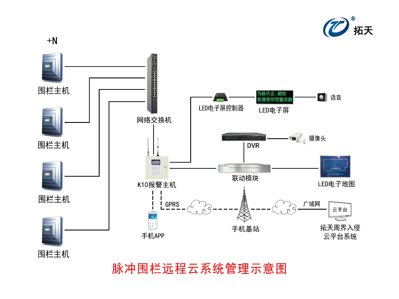 全面支持接入脈沖電子圍欄、張力電子圍欄 、洩漏電纜、振動光纖、地址碼等周界報(bào)警設備,並(bìng)實現集中統一管理。雲平台軟件可以連入多達幾百個GPRS報(bào)警主機