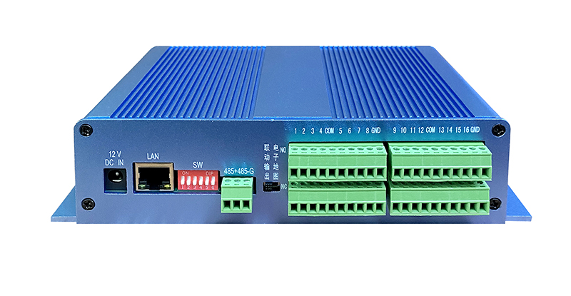 16路聯動設備 通訊方式:RS485/網絡 設備尺寸:240*121*49mm 設備供電:DC12V 設備功率:4W 端口說明: NC: 常閉開關量信号端口,用於(yú)接常閉型報(bào)警輸入設備的一端。